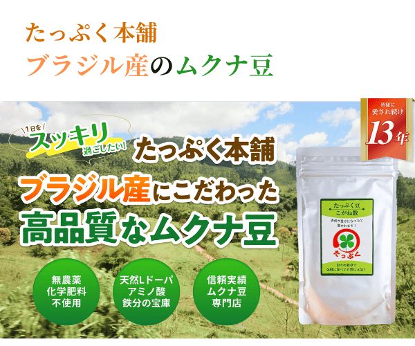 「朝から元気が出ない」「集中力が続かない」「年齢とともに気力が落ちてきた」と感じている方に、ぜひ一度試していただきたいのが【たっぷく本舗】のムクナ豆。